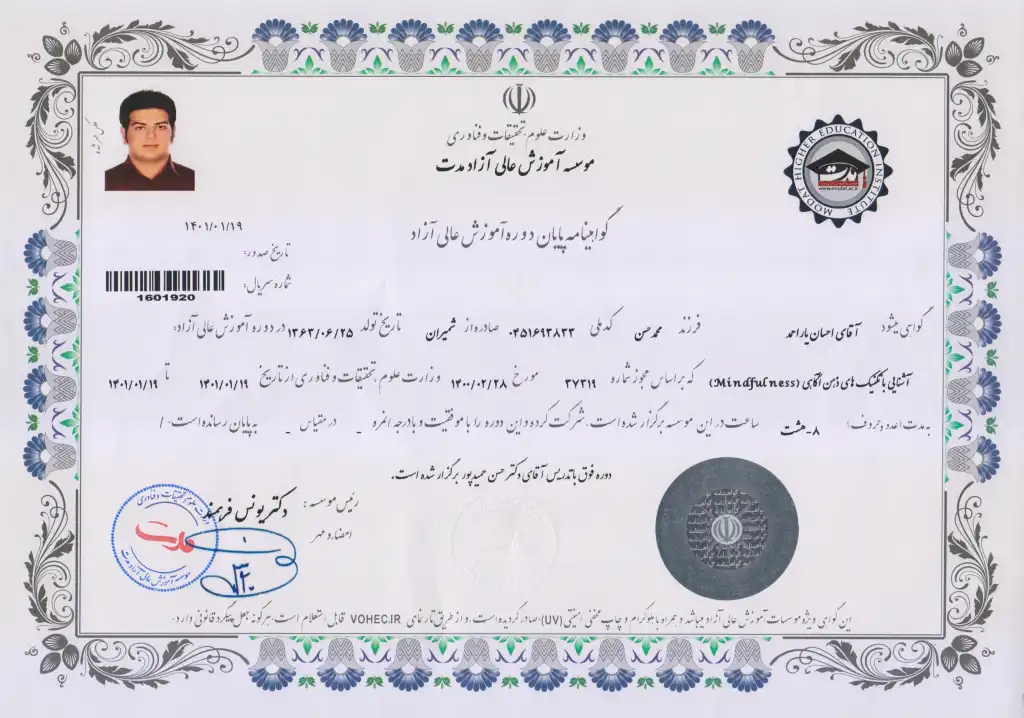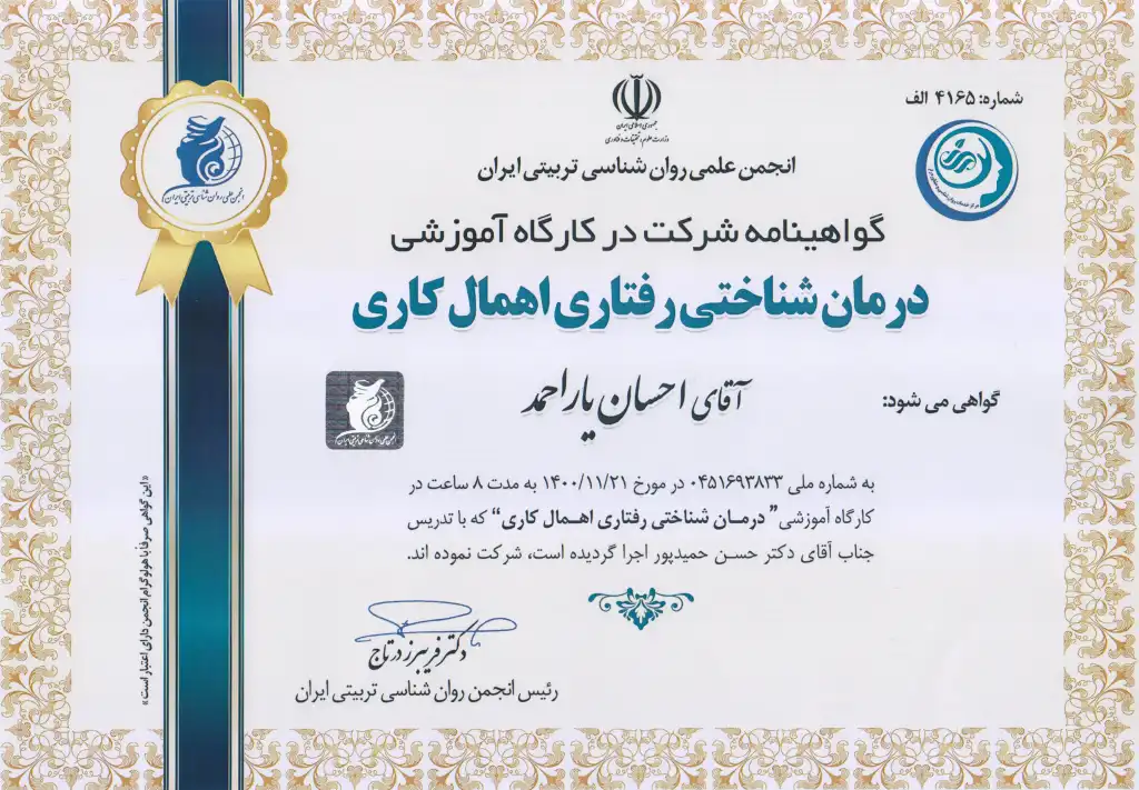 این دوره به شناسایی و بازنگری الگوهای فکری منفی و ارائه تکنیک‌های عملی جهت مدیریت زمان و تغییر رفتارهای مضر اختصاص دارد. بهره‌گیری از این تخصص به من کمک می‌کند تا در فرآیند درمان مراجعان، راهکارهایی موثر برای غلبه بر( الگوهای اهمال‌کاری) و افزایش بهره‌وری فردی ارائه دهم.